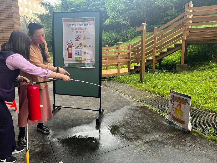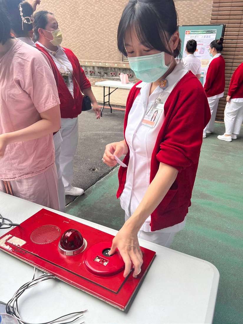 透過教育宣導及實地操作,強化災害發生時的自助與互助應變能力,提升長庚醫院的應變能力與防災韌性。本次演練醫院的自衛消防編組同步動員,在室外空間分組進行操作。「滅火班」練習操作滅火器,「通報班」按壓火災警報器、撥打119報警以及全院廣播訓練,「避難引導班」疏散醫院人員。透過實際的操演練習,縮短緊急應變時間,並快速將院內人員撤出。