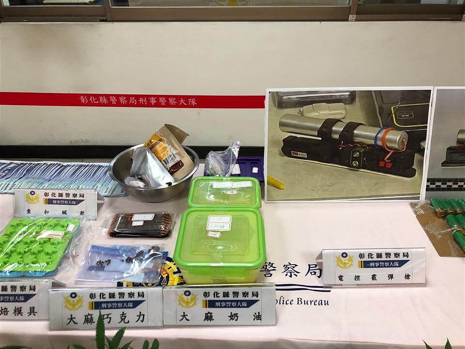 這此警方在李姓主嫌、林姓、秦姓、譚姓、陳姓4名成員住處,查獲大麻植株16株、大麻種子、大麻花、大麻萃取液、大麻酒、大麻巧克力、大麻奶油、栽種設備、現金新臺幣8萬3,000元、土造電控霰彈槍、霰彈21顆、空氣長槍及雷管6根等相關證物,警詢後依違反毒品危害防制條例及槍砲彈藥刀械管制條例移送偵辦。(記者陳品綸/彰化報導)