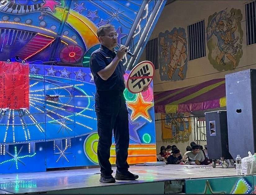 臺東警分局利嘉派出所長郭金義受邀參與本活動,與民眾一同祝賀神明聖誕千秋,除恭敬持香與民眾一同參拜共沐神恩外,也透過這次機會,向在場的信眾們宣導近期常發生的詐騙手法,包括假簡訊詐騙、投資詐騙、打工詐騙、假交友詐騙,以及還有近期盛行的AI類型詐騙,如視訊換臉,打電話模仿他人聲音等,簡要的向在場民眾宣達防詐各項預防知識。