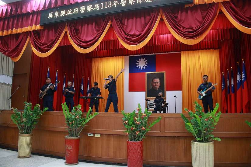 當日活動開始前分別由原住民警察組成的「masalu樂團」及潮州警局組成的「A005樂團」開場獻唱炒熱氣氛,透過動人歌聲讓莊嚴慎重的頒獎典禮更添歡樂及溫馨氣氛。會中表揚年度警察局模範警察、刑事鑑識楷模、偵破重大刑案有功人員、績優義警、義交、民防人員、志工人員獎狀及禮券。