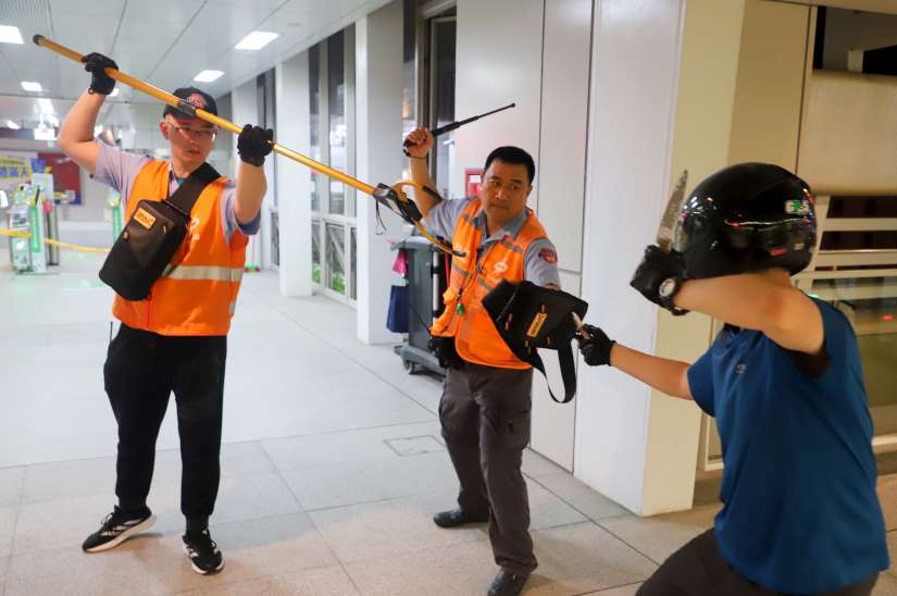 另外,各車站防護裝備除既有的防禦棍棒、盾牌及防身噴劑,再增加防暴鋼叉,並由台中市警察局技術教官指導保全、站務員如何使用防護裝備;中捷公司也透過平時演練訓練,讓第一線人員熟悉相關設施及防護裝備的正確使用方式,以強化應變能力。