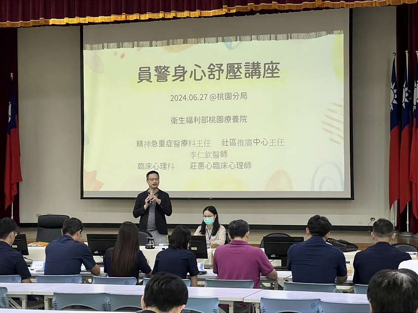 警察的工作繁雜,每日面對各類治安狀況,身心長期處於高壓狀態,就今年已陸續發生多起員警自戕的悲劇。為了提升基層員警的身心健康,桃園警察分局特別於6月27日利用舉行聯合勤教的時段,特別邀請衛生福利部桃園療養院李仁欽主任與莊惠心臨床心理師,為分局同仁們進行了一場專題講座,內容聚焦於如何有效地紓解壓力、提升心理健康。