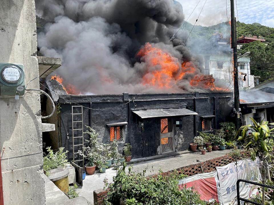 新北市瑞芳區明里路1間平房民宅1日13時許突然竄出大火,火勢燒猛烈火舌竄出,濃濃黑煙直衝天際,遠在1公里外就能看見,警消獲報後趕往現場,在搶救撲滅火勢期間,從屋內救出1名無呼吸心跳男子,經救護人員與死神搶人,送醫途中恢復了生命跡象。