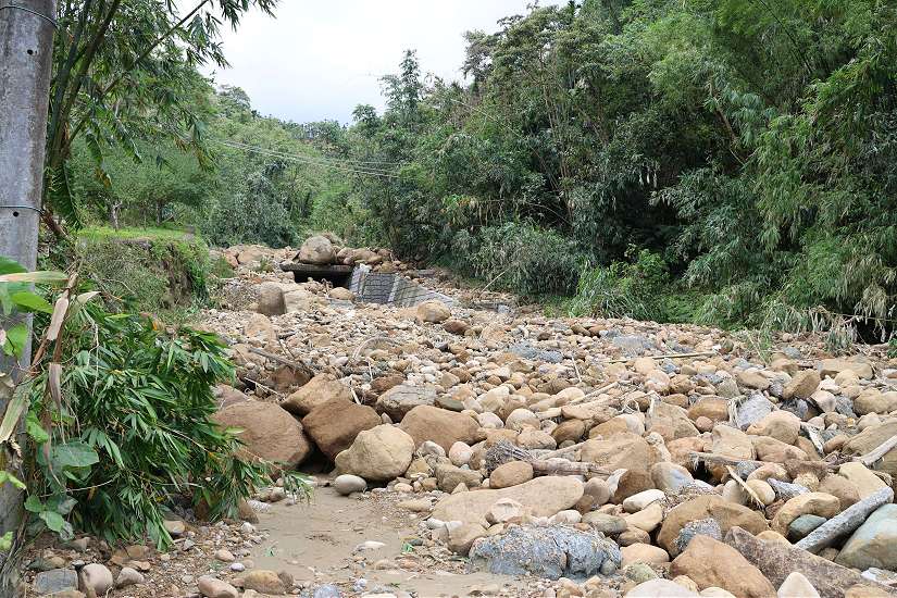 縣長張麗善表示,古坑郷桂林村近大湖口溪支線處,因豪雨導致土石流潛勢溪流(雲縣DF013)土砂順流而下,於道路處形成沖積扇堵塞道路下方箱涵,路面大量土砂淤積,中斷無法通行。目前現場封路,不予通行,並研議緊急疏通範圍,兩週内搶通;中期將提報災後復建工程,針對潛勢溪流及下邊坡改善。長期將依照地方意見,通盤檢討,規劃長久可行方案,並與中央商討及爭取經費挹注,守護鄉親及保護整個山區整體環境安全。另古坑華山教育農園後方土石崩塌致道路中斷,進行暫時封路處置,並提報災後復建工程計畫。