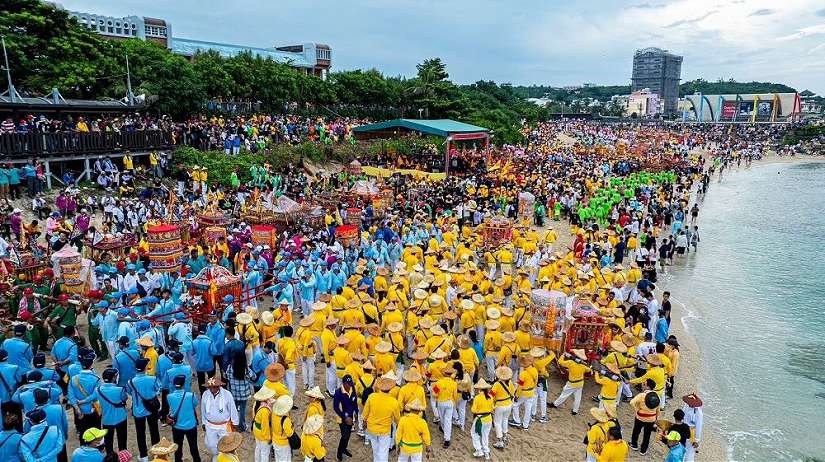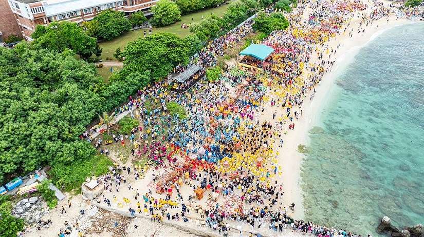 屏東「甲辰正科琉球迎王平安祭典」3日登場,一早小琉球全島總動員,以「逡港腳」海上遶境的方式為琉球迎王拉開序幕,下午廟方遵循古禮在中澳沙灘進行請王駕「請水」儀式,甲辰正科代天巡狩「魏」府大千歲於傍晚17時30分駕臨,全場歡聲雷動,鞭炮聲四起,正式展開為期7天的迎王平安祭典。縣長周春米表示,希望藉由代天巡狩千歲爺的賜福,祈求庇祐四時無災。