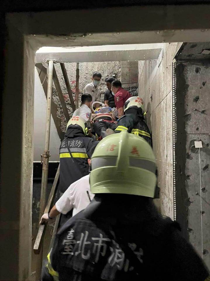 警消表示,孫姓工人當場已經沒有生命跡象,因此當場施以CPR急救,隨後將他固定在長背板上抬至1樓,緊急送往醫院救治,直到15時許宣告不治。(記者余珩維/台北報導)