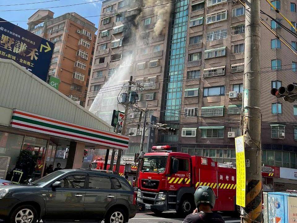 新竹縣竹北市24日8時許,中正東路1棟大樓發生氣爆意外,熊熊火勢不斷從起火戶冒出,黑色濃煙更是直竄天際,警消趕抵現場從9樓、11樓救出12名住戶,隨後附近居們都紛紛聞到瓦斯味報案,警消初步了解是瓦斯公司加壓異常,因此趕緊封鎖附近道路避免發生其他意外。