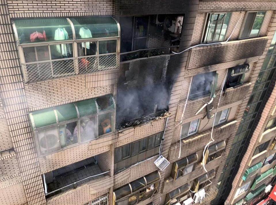 火勢撲滅後,9至11樓起火戶外牆都被熏嘿。畫面讀者提供