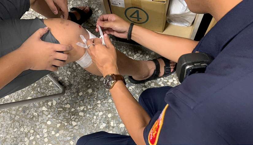 經了解該名男學生目前就讀國中,當天上午與另名同學約好一同騎自行車外出運動,豈料下午騎車行經南田市場時,天氣驟變下起傾盆大雨,因不熟悉路況又急著躲雨,情急之下不慎自摔,導致四肢多處擦挫傷,且因2名男同學均無手機可使用,遂冒著大雨騎自行車離開,沿途尋求協助,幸路經興安派出所時,徬徨無助的兩人如同見到汪洋中的燈塔,立刻進入派出所表明需要包紮傷口,警方眼見同學心急如焚,便提供救護箱予男學生,惟該名男學生卻不知如何使用相關藥品及清理傷口,警方見學生神情躊躇即主動幫忙,順利止血並為其簡易包紮,亦提醒該名男學生在返家後務必再由家長陪同至醫院檢查傷口,確認無礙後方可避免引發其他後遺症,2名男學生對於警方的暖心協助皆讚許不已,頻頻向警方表達感謝之意,同時肯定警方在其自摔受傷後積極的主動關心,讓他感受到警察對民眾如此溫暖,不愧是人民褓母。
