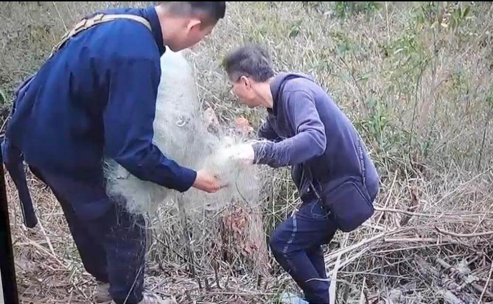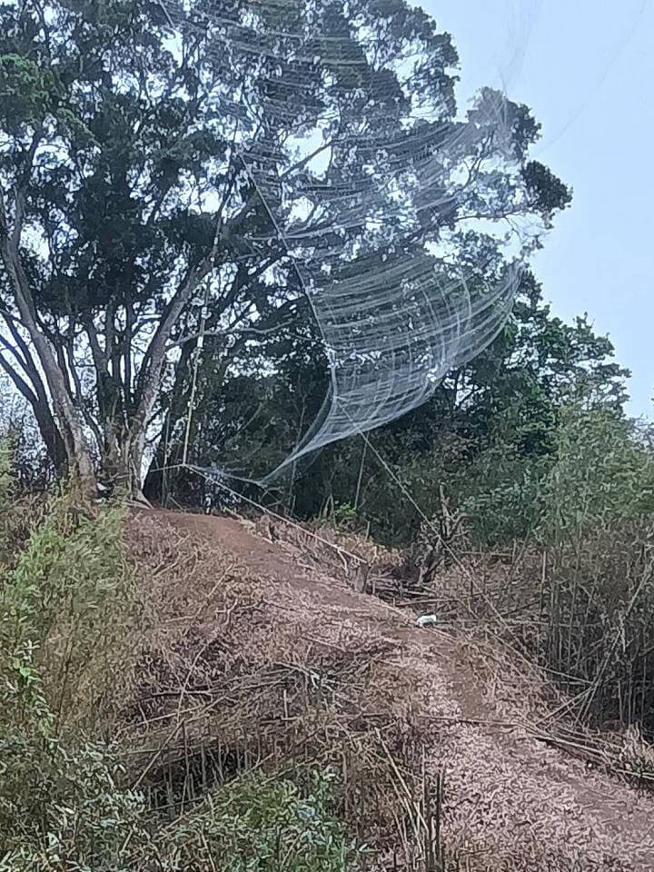 擄鴿集團在山區架設捕鴿網。畫面讀者提供