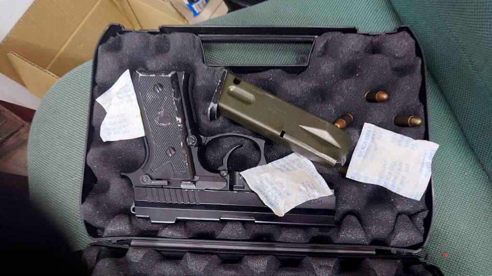 台北市內湖警分局日前接獲線報,指稱綽號小張的男子,持有1把改造金牛座手槍,因此開始展開調查,隨後發現張姓嫌犯在落腳新北市,立即前往將人逮捕,起出1把改造手槍、6顆子彈等證物,但張嫌卻供稱,槍枝是朋友拿來抵債,自己只是收藏而已,警詢後依違反槍砲彈藥刀械管制條例移送偵辦。