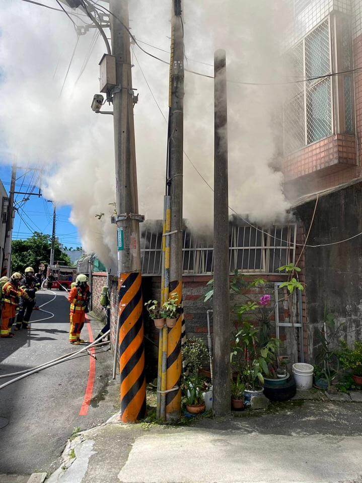 濃煙不斷從1樓鐵皮加蓋庭院竄出。畫面讀者提供