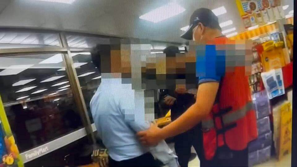 警方在超商內逮捕詐騙車手。畫面讀者提供