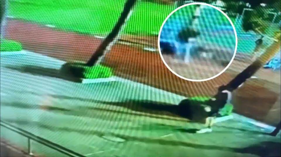賴姓嫌犯偷竊籃球架旁的財物。畫面讀者提供