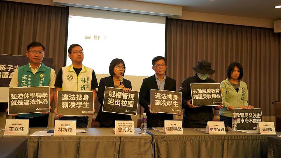 疑遭霸凌輕生高中生家長與人本教育文教基金會出面開記者會控訴。翻攝本教育文教基金會