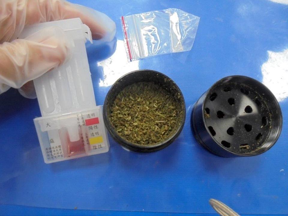 台北市保大中隊長朱浩瑜指出,員警攔停汽車駕駛詢問姓名時,車內散發出大麻特殊的「青草味」,張姓駕駛還一度關閉車窗企圖藏毒,員警隨即在張嫌及余姓副駕駛隨身包包內,查獲第二級大麻菸草4包毛重21公克、大麻菸彈52顆毛重829公克、大麻研磨器1個等違禁品,警詢後違反「毒品危害防制條例」移送法辦。(記者黃子瑋/台北報導)