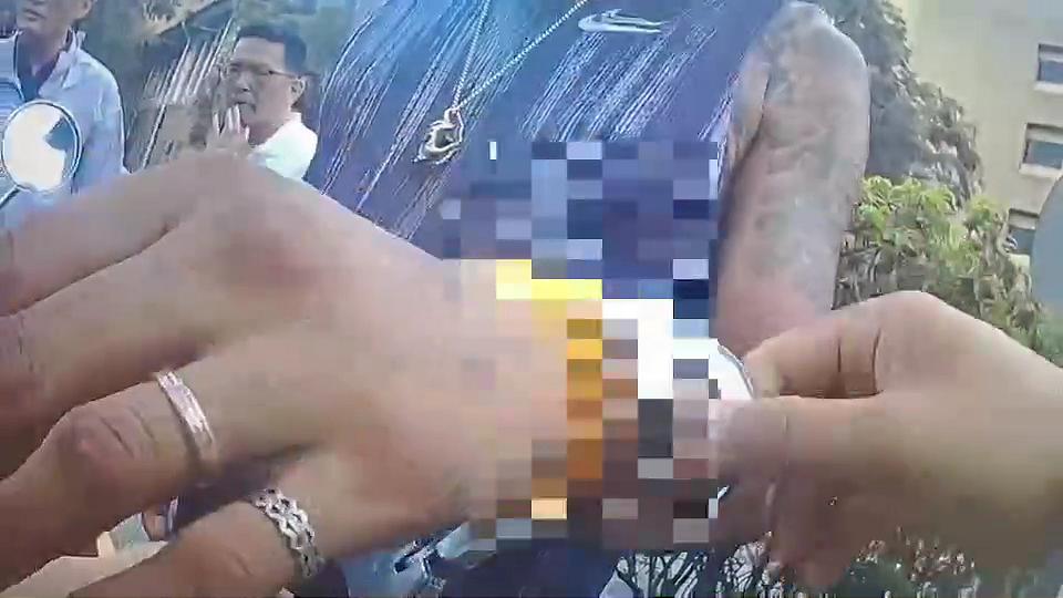 沈姓竊賊遭逮捕上銬。畫面讀者提供