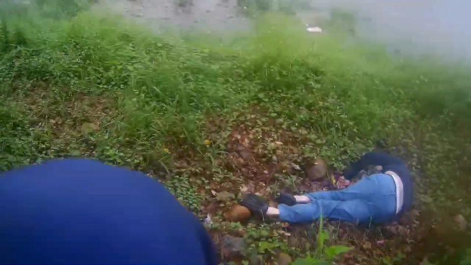 王姓駕駛逃逸時不慎摔倒在河堤旁。讀者提供
