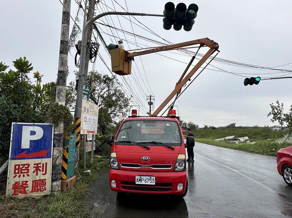 【記者戴英薇/屏東報導】 小犬颱風席捲國境之南,強勁的風雨對恆春半島帶來了巨大的破壞,由於強風、樹木倒塌、水浸等原因,號誌故障及損壞率大增,對駕駛人和行人帶來巨大的不便和潛在危險。在這艱難的時刻,屏東縣政府警察局交通警察隊的號誌維修小組,積極出勤巡查搶修,以確保交通號誌能夠正常運作,給予用路民眾最安全的指引。
