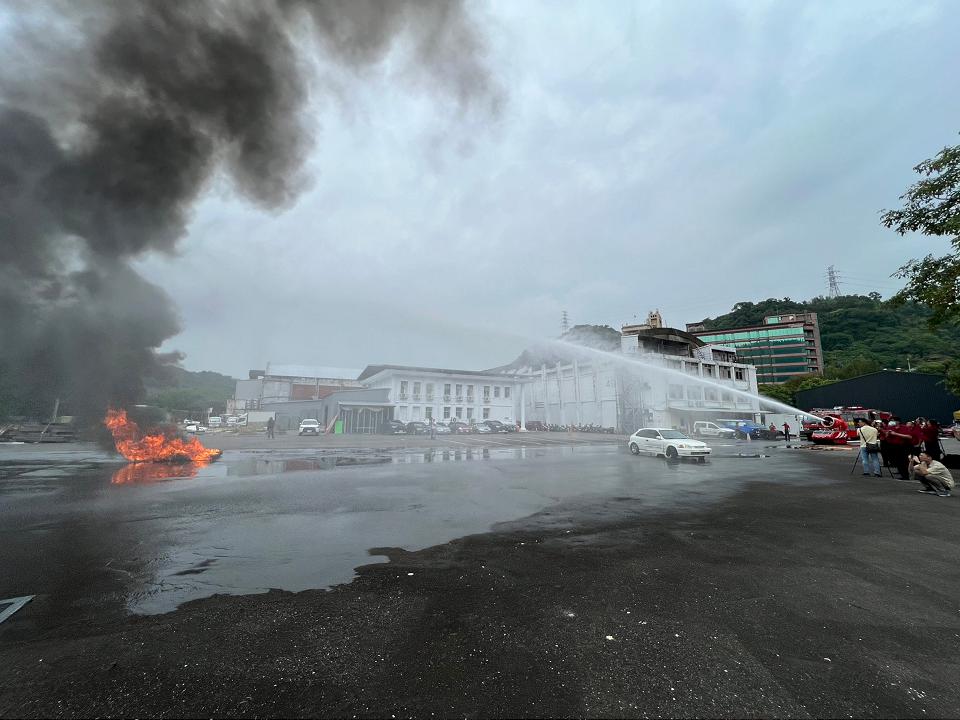 台北市消防局表示,消防人員透過遠端操控,由「LUF60 消防機器人」深入危險場域,代替消防人員進行風險較高近距離救援,可以減少可能發生噴濺、爆炸或極端火勢危害的情況,隨著消防救災智慧科技發展之日新月異,各項救災裝備器材持續進化更新。