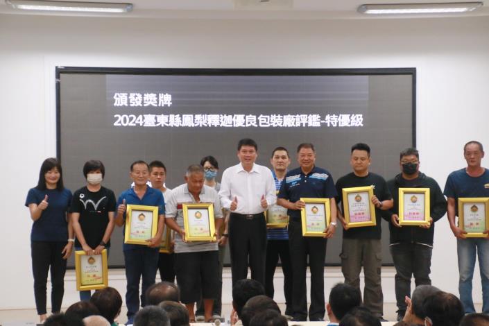 為期3個月、119次的包裝廠評鑑作業,臺東縣政府揭曉113年度「鳳梨釋迦優良包裝廠評鑑」得獎名單,並於2日縣務會議暨擴大主管會報頒獎表揚,臺東縣長饒慶鈴恭喜陽光農產包裝廠等10家業者脫穎而出,同時肯定獲獎包裝廠對品管的堅持,期盼成為臺東包裝廠的學習典範,共同維護高品質果品,永續產業發展。