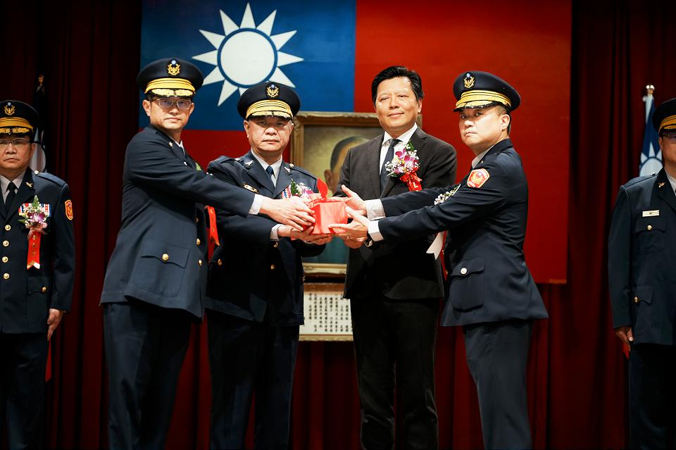內政部警政署辦理全國警察機關重要警職人事調整作業,台北市警局17日上午9時由市長蔣萬安主持、市警局長張榮興擔任監交人,市長蔣萬安強調重點工作項目及核心價值,期望能縝密規劃勤務、主動積極執行,對治安、交通維護工作不遺餘力,讚許警察同仁全年無休地守護本市市民生命財產安全。