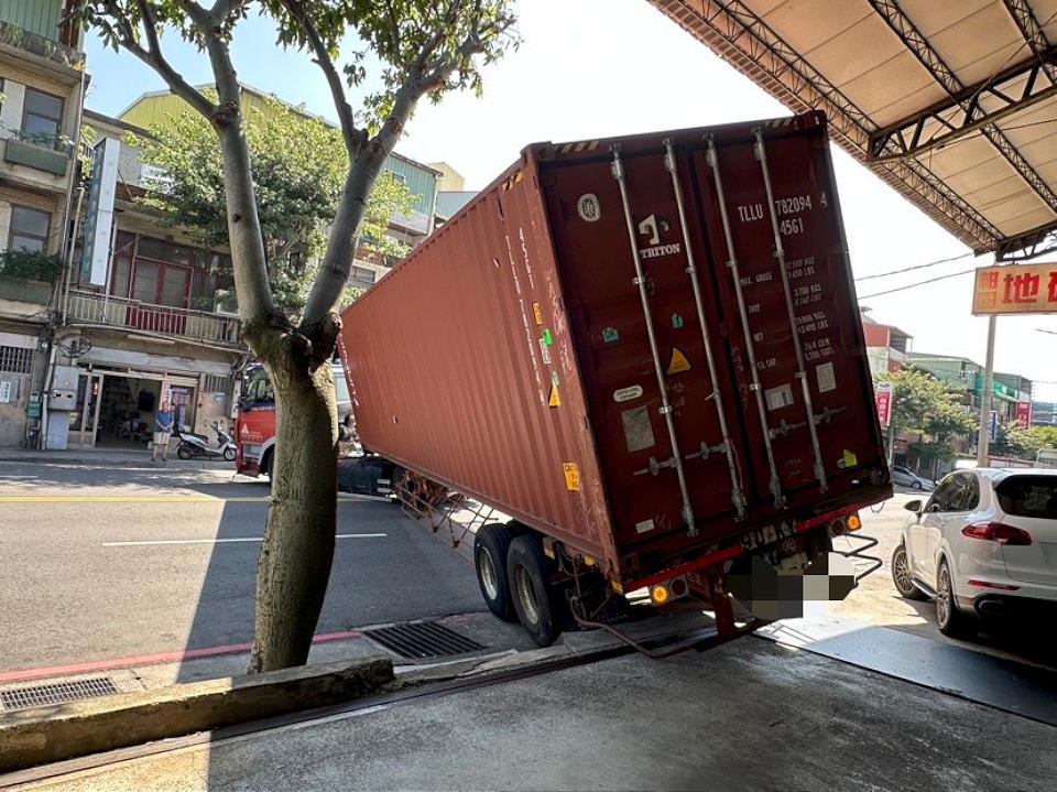 新北市樹林警分局柑園派出所員警執行巡邏勤務時,接獲報案有貨櫃車傾斜事故,立刻趕赴現場後,發現已嚴重影響交通,立即通報請調派警力和義交到場協助指揮交通,另聯繫拖吊車支援,及時排除障礙,讓交通恢復順暢。