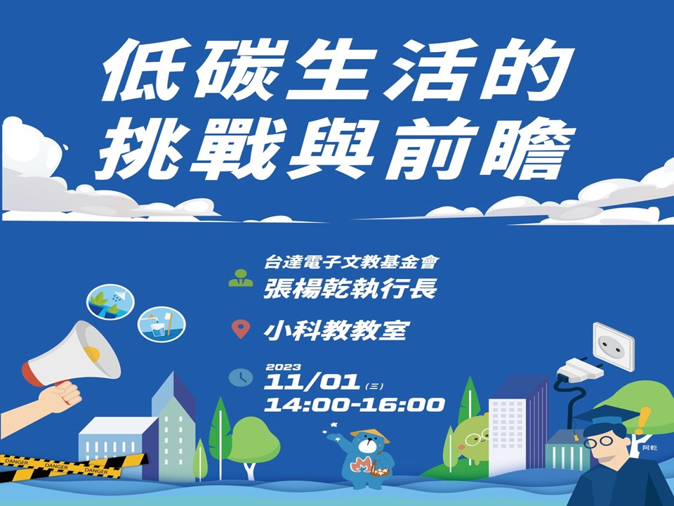 此外,海科館的大師講座,也將於11月1日(三)邀請國內實踐低碳生活行動者張楊乾以「低碳生活的挑戰與前瞻」議題,分享如何落實與實踐低碳生活,以及減碳生活的內涵與未來,歡迎民眾參加!預先報名者有機會獲限量好禮。