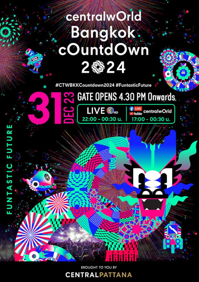 請於12月31日參加「centralwOrld Bangkok Countdown 2024—亞洲時代廣場 」活動。拉查丹利路上的尚泰世界購物中心將於下午6:00開放場地。下載Central Life X應用程序即可免費入場。千萬不要錯過這個千載難逢的慶祝活動!