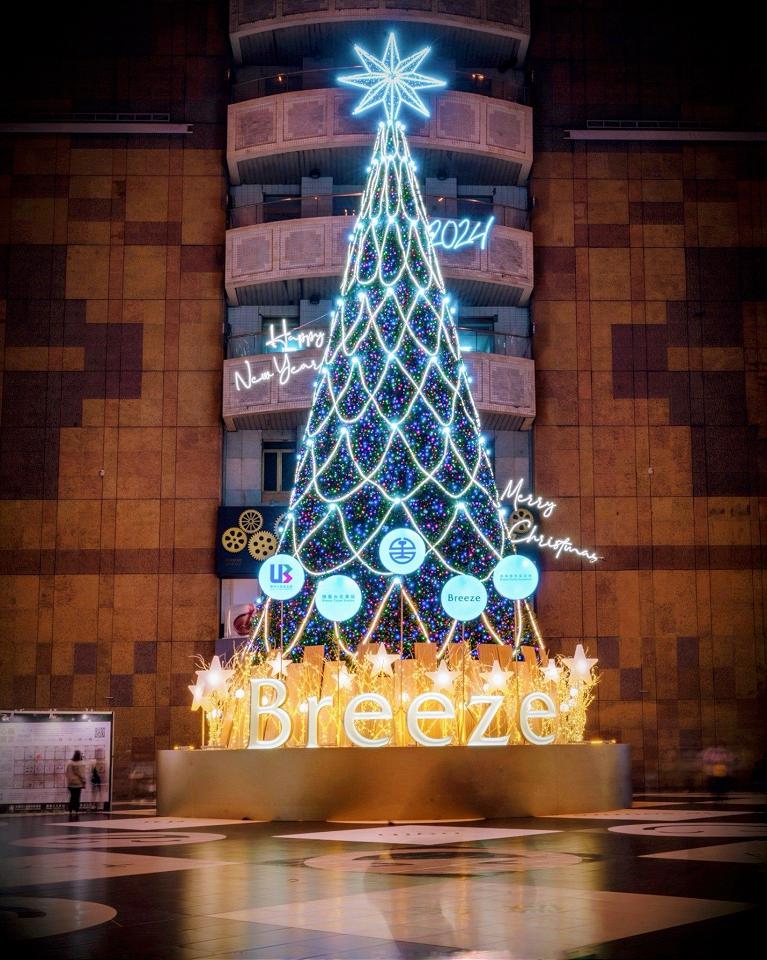 點亮2023年全臺室內最高耶誕樹,位於微風台北車站1樓廣場大廳,以浪漫時尚的銀白色作為燈飾主體色系,樹上裝飾超過75,000顆聖誕燈泡,高達23米樹頂的閃耀八角星,象徵著希望與夢想的未來~