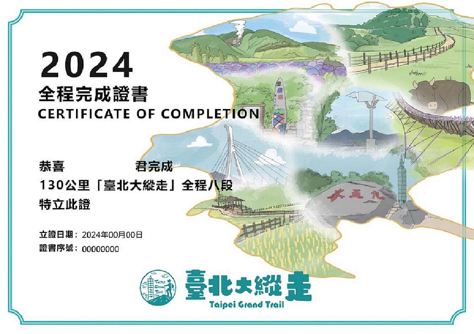 台北大縱走完成證書。翻攝台北市政府