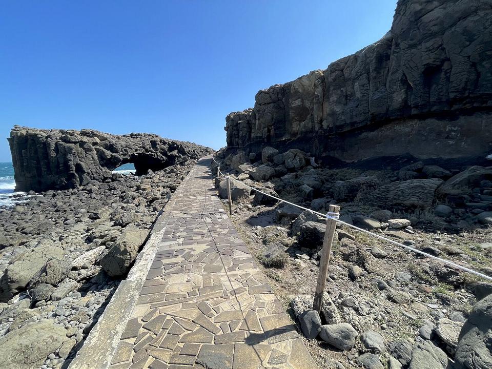 縣府農漁局12日緊急派員前往鯨魚洞及火口湖遺跡自然紀念物旁步道架設臨時性護欄,就是要避免民眾拍照誤入受傷,因此縣府特別呼籲民眾,在欣賞自然美景時仍需持安全距離。如民眾發現岩壁有大規模崩落跡象,也請隨時通報農漁局及交通部觀光署澎湖國家風景區管理處處置。(記者雷軒/澎湖報導)