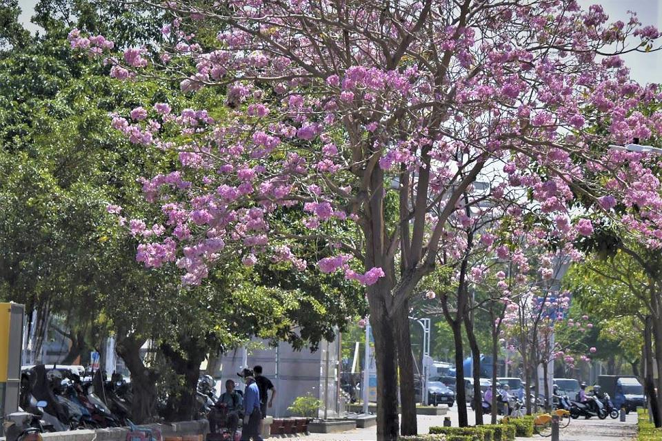 公園處表示,基於適地適種原則,行道樹選用時應考量適應南台灣氣候的各式樹種進行城市綠美化,原生熱帶美洲的紅花、洋紅風鈴木,在高雄風土適應力佳,花色有的粉嫩、有的緋紅,深深淺淺的色彩變化,活潑又生動。歡迎民眾把握花期,與在高雄街頭、公園、湖畔綠地邊來場不期而遇的粉色邂逅。(記者雷軒/高雄報導)