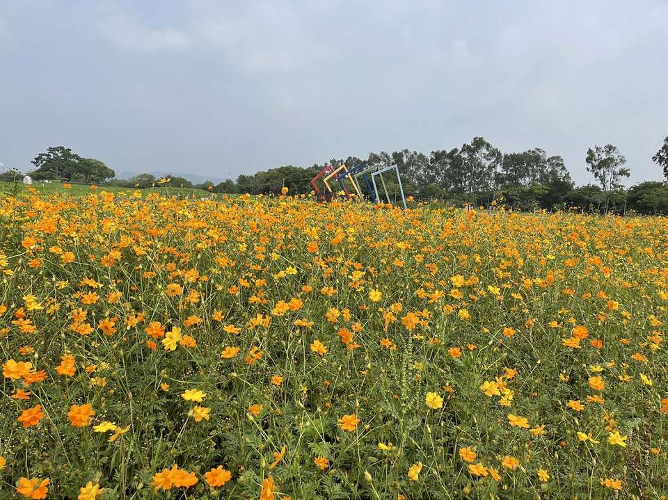 為營造季節性公園特色賞花主題,台中建設局積極推動「台中美樂地計畫」,在后里環保公園種植面積約4000平方公尺的波斯菊,目前正值開花季節,一大片橘黃色波斯菊如夢如幻地綻放,正是大家最好休憩空間及到訪的公園綠地環境。