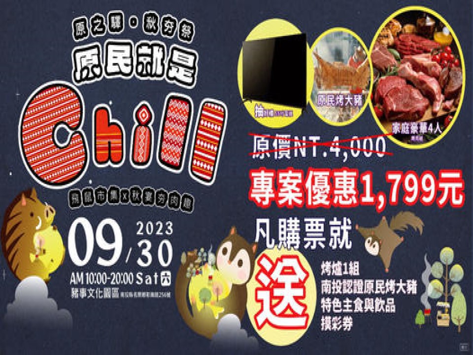 南投縣政府在南投豬樂園文化園區舉辦「原之驛秋夯祭-原民就是Chill」活動,從30日上午10時至晚間9時,內容包括飛鼠市集、小小獵人、小小織女、布虎射箭體驗及一系列親子互動節目,預購烤肉組還可抽大獎,活動相關及預購資訊,民眾可至原之驛、飛鼠市集粉絲專頁查詢。