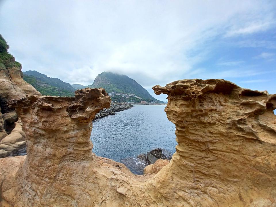瑞芳區水湳洞漁港旁「鬆獅犬岩」(上圖)與萬里區「駱駝峰」(下圖)。翻攝新北市政府