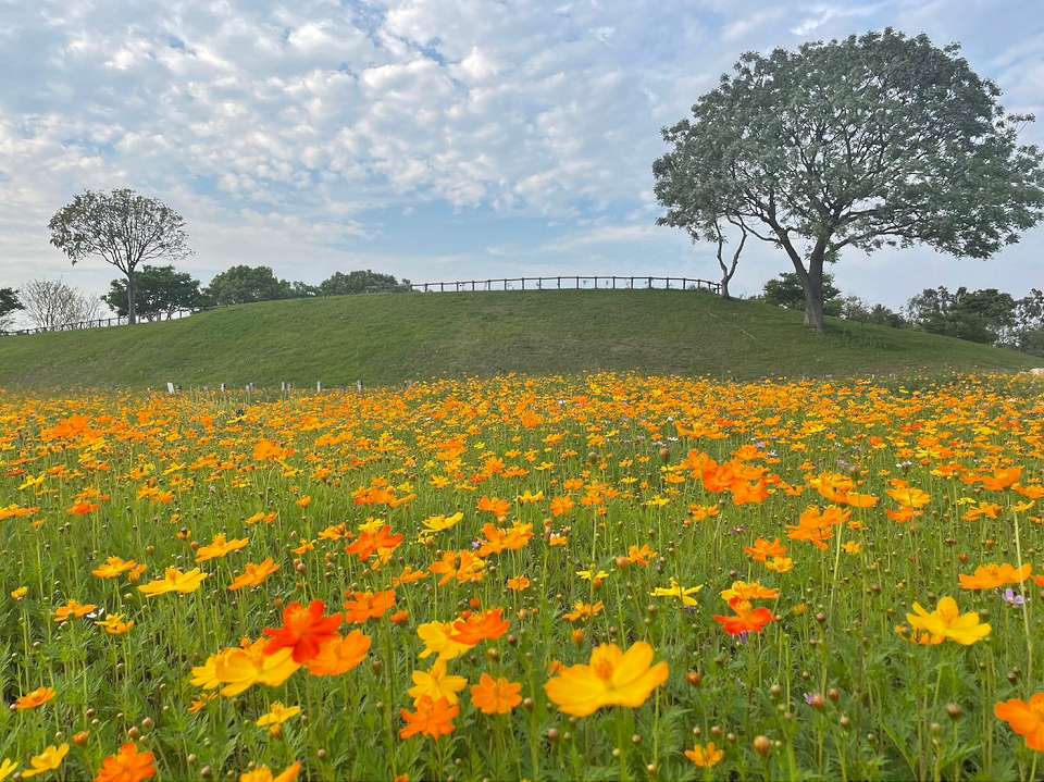 為營造季節性公園特色賞花主題,台中建設局積極推動「台中美樂地計畫」,在后里環保公園種植面積約4000平方公尺的波斯菊,目前正值開花季節,一大片橘黃色波斯菊如夢如幻地綻放,正是大家最好休憩空間及到訪的公園綠地環境。