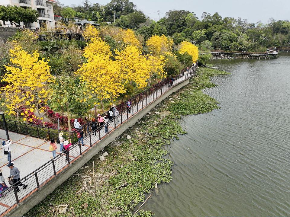 新竹縣尖石、五峰、橫山、竹東等地目前櫻花滿開,粉嫩花色掀起賞櫻熱潮,緊接著3月將迎來黃花風鈴木盛開的季節,金黃一片的花海勢必掀起新一波打卡熱潮,縣府整理幾處絕佳的賞花景點,包括新埔詹家黃金風鈴木、巨埔休閒生態農場以及峨眉湖步道,目前已開花四至五成,預計3月初滿開。