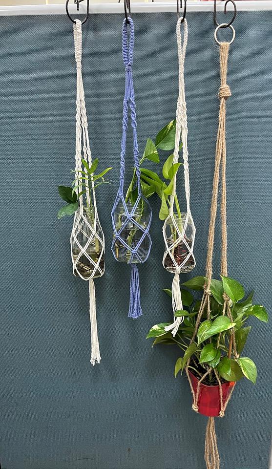 麻線或棉線編織成網袋,將玻璃瓶裝入就是好看植物吊飾。翻攝台中市政府