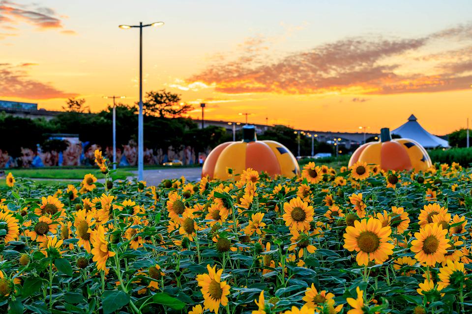 台北市大佳河濱花海迷宮正式登場!首先打頭陣的向日葵花海已經到了滿開盛況,另外,還有莫內品種向日葵、波斯菊和太陽麻……等高大的花種,將陸續盛開到11月底,帶來不間斷的花朵饗宴。現場大型的南瓜雕塑,也呼應即將來臨的萬聖節,讓大家打卡拍照更有亮點!