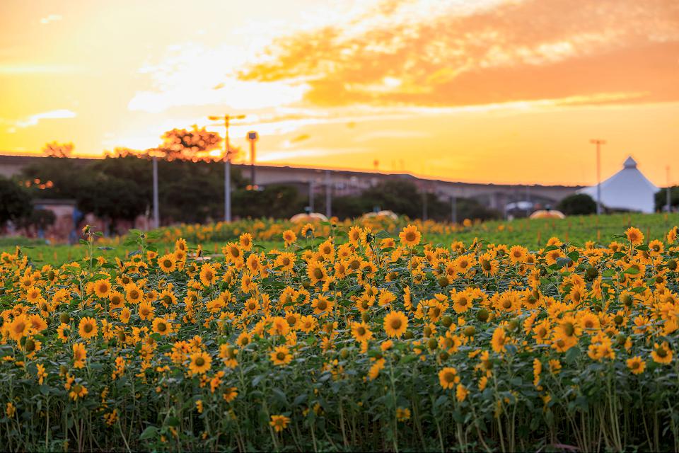 大佳河濱向日葵盛開 金黃色花海隨風搖曳