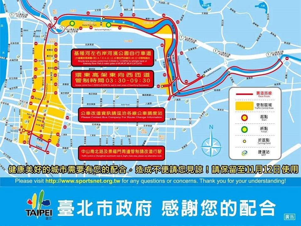 「2023渣打台北公益馬拉松」交通管制圖。讀者提供