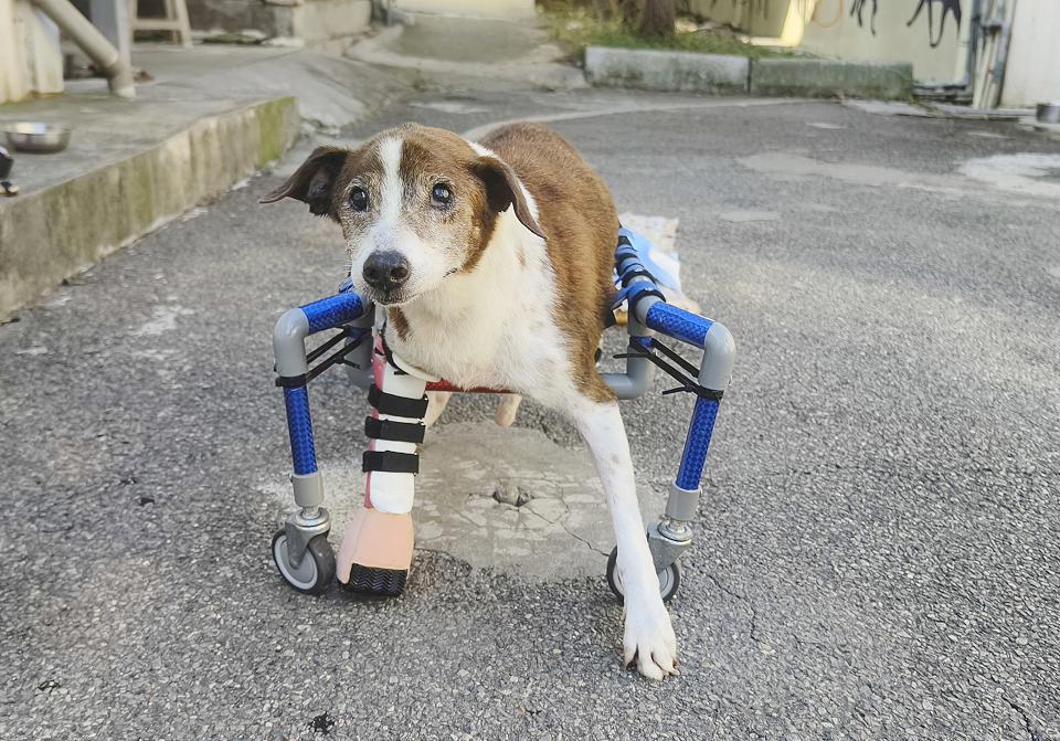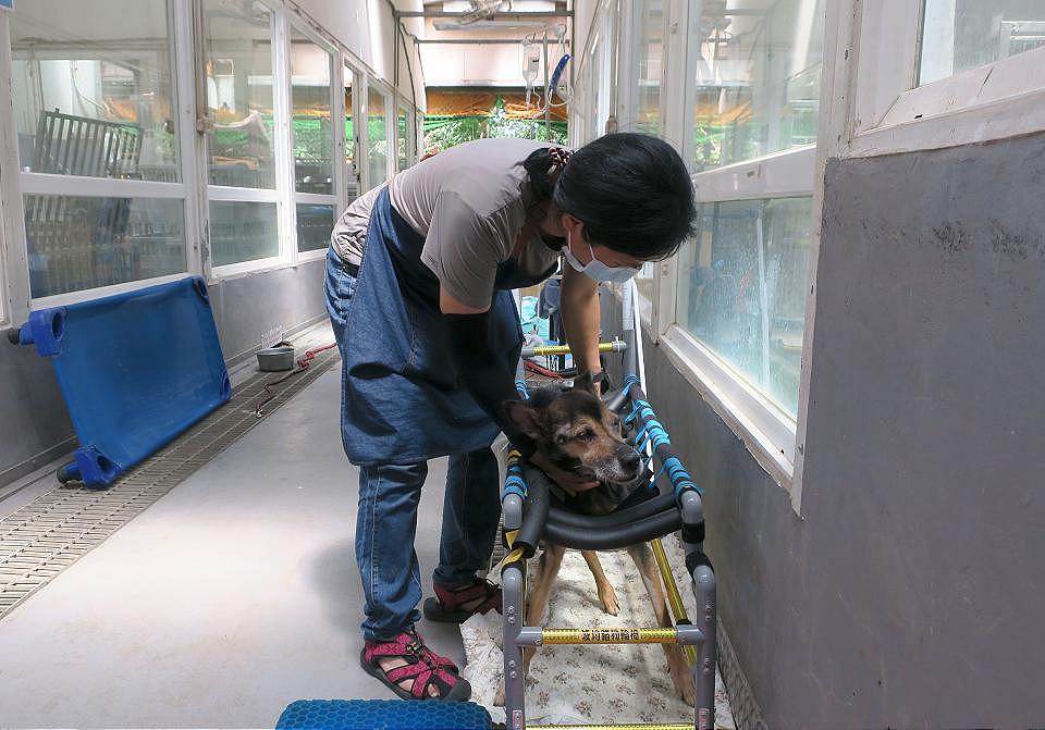中和動物之家提供友善收容空間並製作輪椅給身障毛寶貝。翻攝新北市動保處