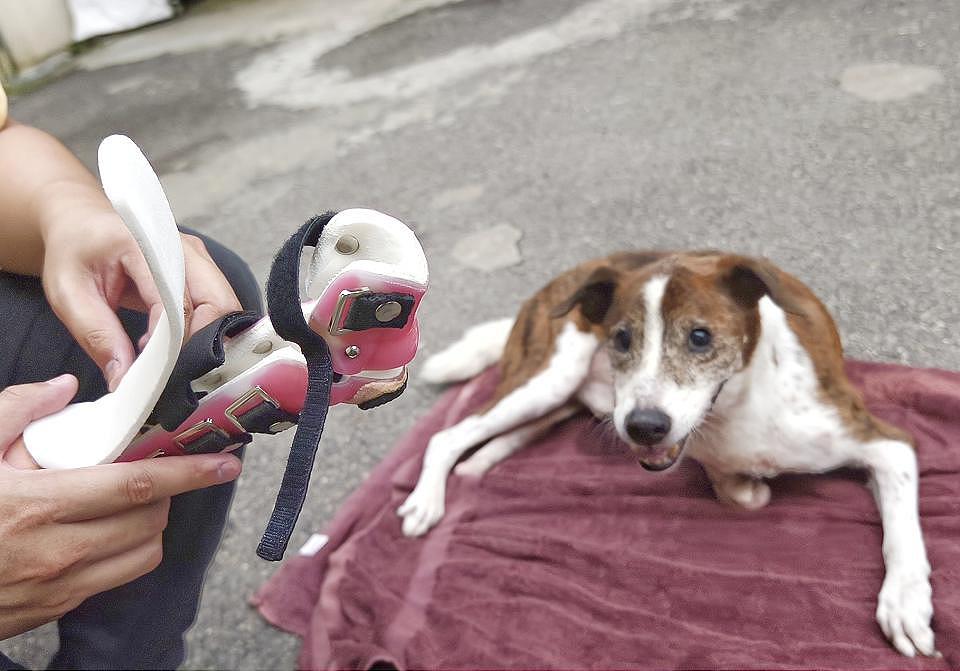 不過「瑞瑞」遇上了深具愛心的董姓志工,他特別關心殘障狗「瑞瑞」,儘管獸醫師指出「瑞瑞」由於年紀及關節退化,活動力下降,輔具的使用效益有限,但董姓志工仍不放棄,自費在外購製了右前腳的義肢,「瑞瑞」已經有2年沒用右前腳行走,所以不主動使用它。