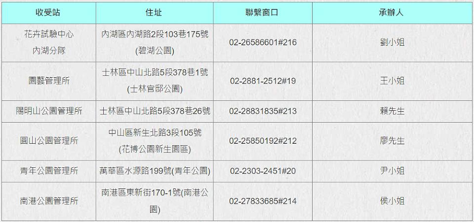 2.收受站地點:各公園管理所辦公室。