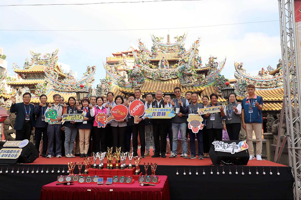 第一屆「北港媽祖盃」全國桌球錦標賽14日於朝天宮廣場舉行開幕典禮,來自全國293隊、2500多名選手齊聚競技;縣長張麗善、朝天宮董事長蔡咏锝歡迎選手們參加比賽,比賽期間可以儘情享受北港在地美食,暢遊景點,更了解媽祖信仰文化。