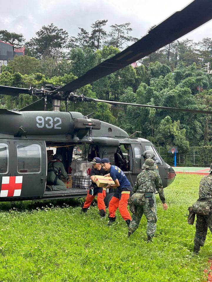 國軍與搜救人員以直升機運補。畫面讀者提供