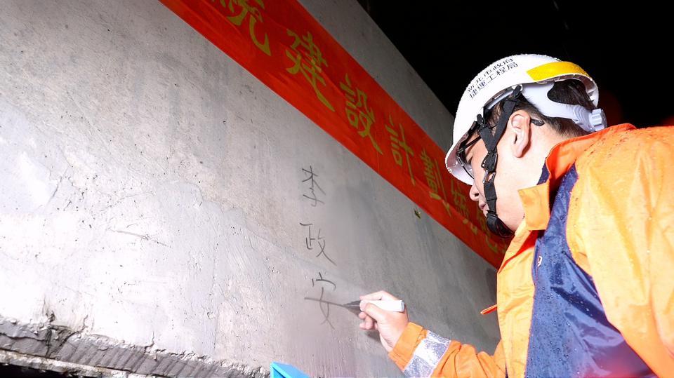 捷運局長李政安上梁簽名。翻攝新北市政府