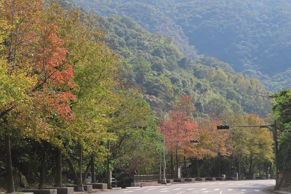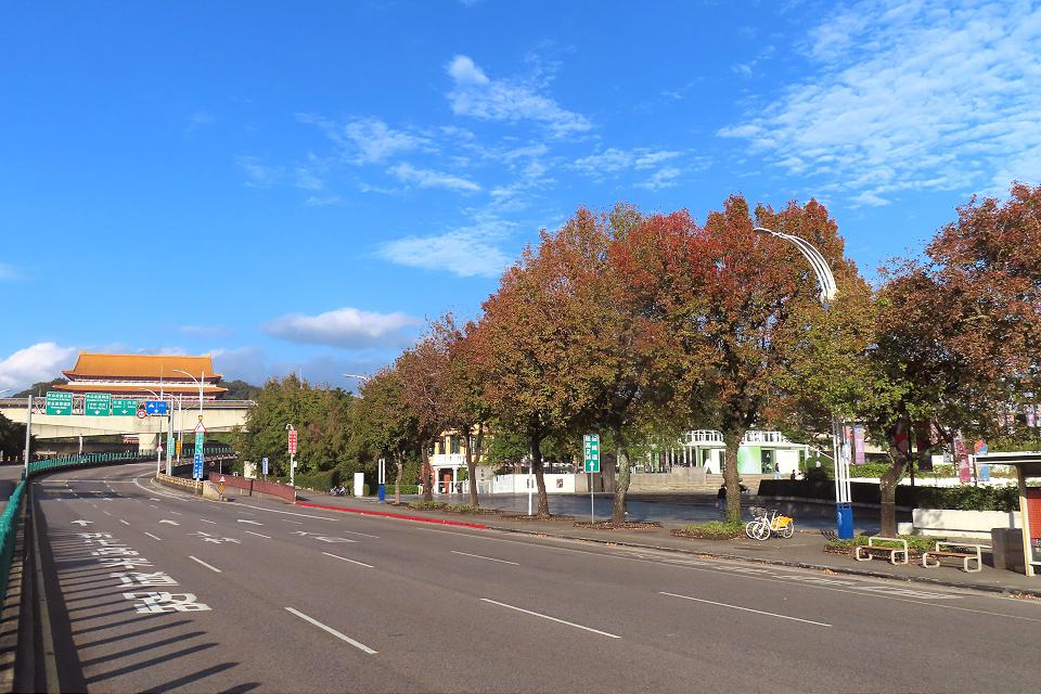 台北市中山北路圓山附近楓葉開始轉紅。翻攝台北市政府
