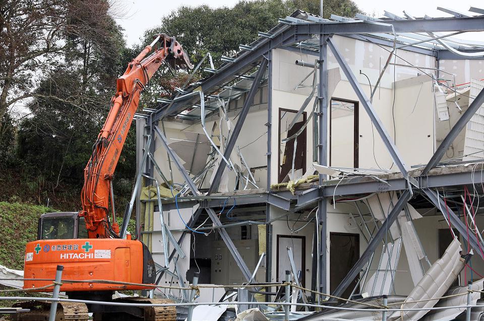 怪手機具打穿外牆,拆除屋頂、隔間牆、樓地板等,達不堪使用程度。翻攝新竹縣政府